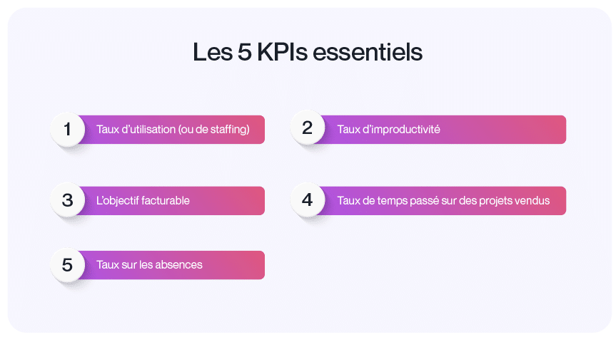 Eine bessere Beherrschung dieses KPIs ermöglicht es Ihnen, die produktive Zeit für Kundenprojekte zu erhöhen, die Rentabilität jeder Aufgabe zu verbessern und die Nutzung der Mitarbeiterkompetenzen zu maximieren.